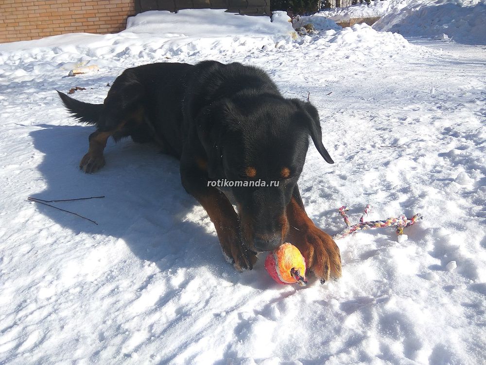 | Жорик очень любит игрушки, причём играет с ними он в основном аккуратно. Очень хочет домой наш доберотвейлер