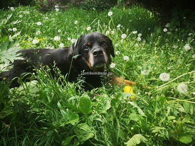| Венька такой энерджайзер, что совсем не скажешь и главное не поверишь в то, что ему около 9-10 лет. Несколько дней назад этот энерджайзер так скакал, что сорвал себе коготь И..... Это не мешает ему скакать дальше, иногда приходя и жалуясь на больную лапку #ротикоманда_ВЕНЯ #ротвейлер