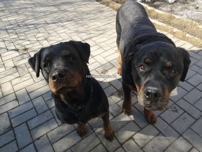 | Познакомились Бош и Веста. К сожалению, хорошие/нейтральные отношения не заладились. Бош начал бузить, Веста в долгу не оставалась, поэтому мы в раздумьях продолжать ли их сближать. #ротикоманда_БОШ #ротикоманда_ВЕСТА #ротвейлершаизякутска #ротвейлер