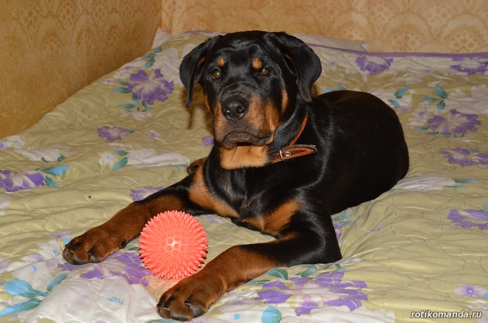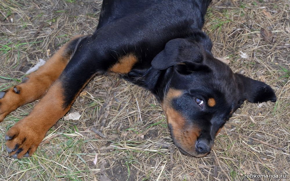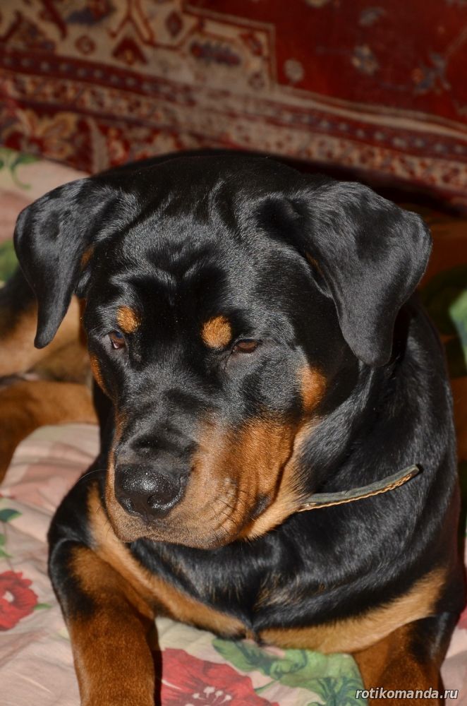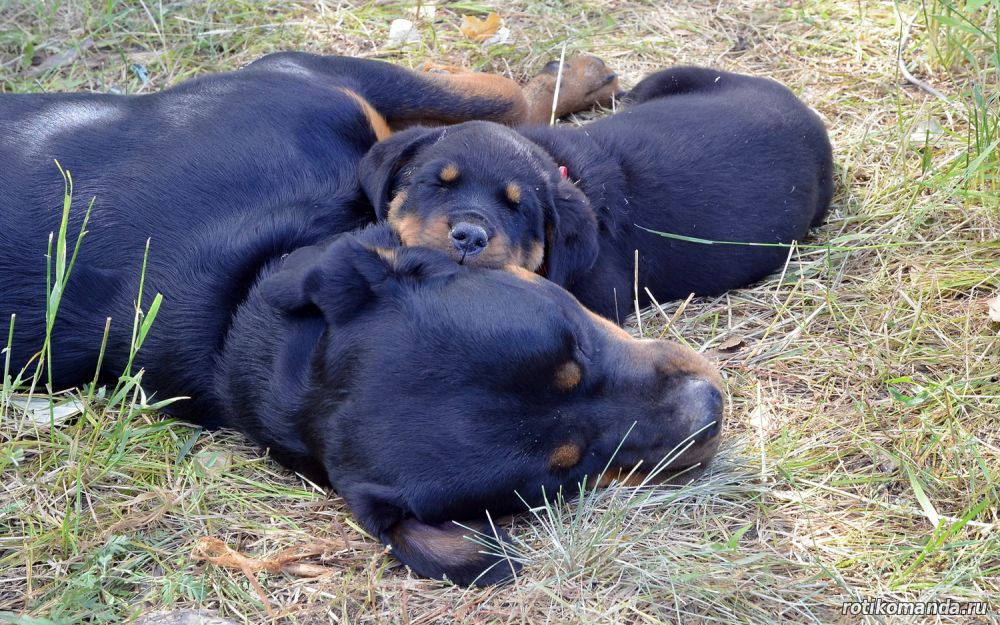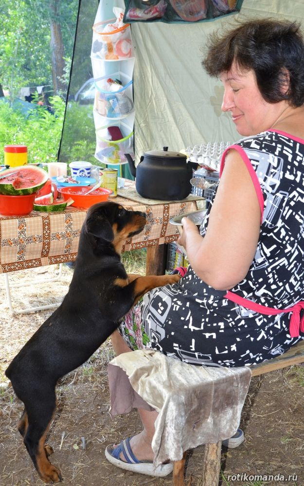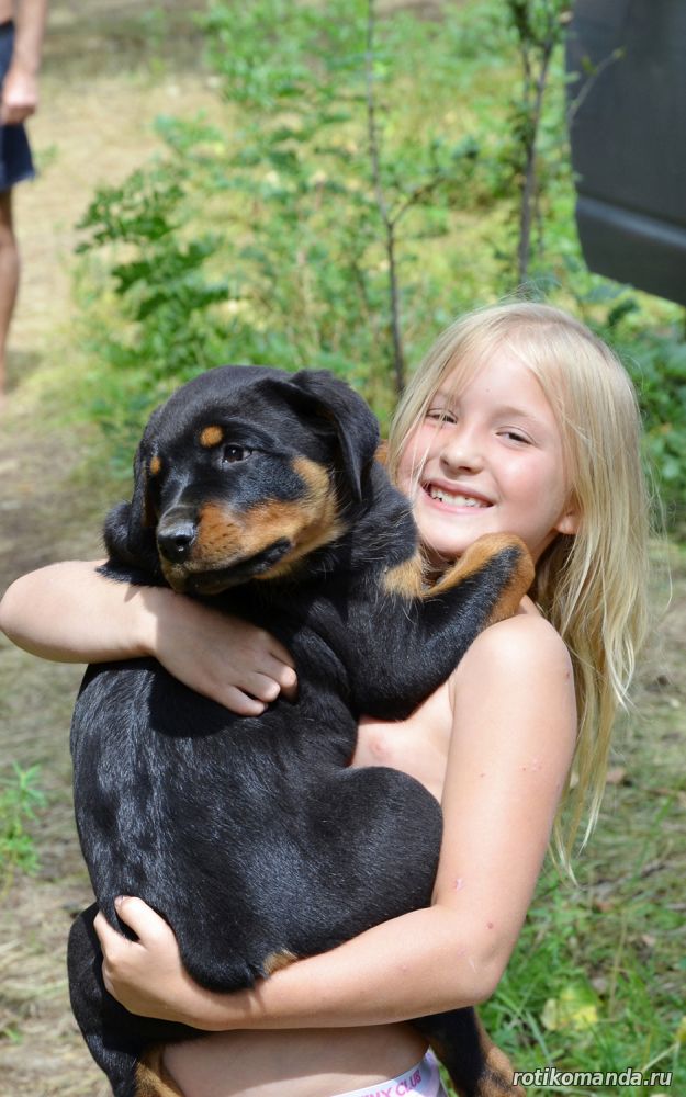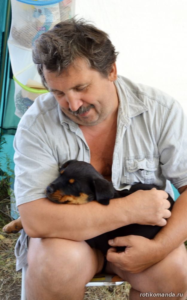 | В нашей семье жизнь без четвероногого друга уже немыслима. Порода, разумеется, в семье не обсуждалась. Кроме "ротика" лучше может быть только "ротик"! Не знаю, как, что и кто меня вел в поисках новой любимицы (а было именно так, также, как и с Евой), но я оказался на АВИТО. Просмотрев несколько вариантов, мы остановиль на одном из них. На фото красовалась семья "ротиков". Хозяйка предлагала несколько щенков, среди которых было две девчонки. Со слов хозяйки, одна всегда оставалась с мамкой, а другая - постоянно следовала за хозяйкой. Проанализировав, мы уже заочно выбрали вторую.