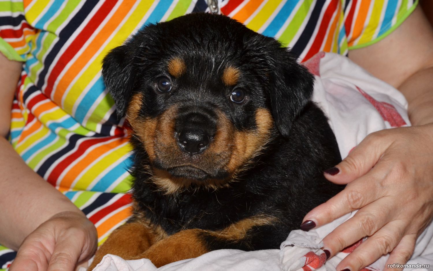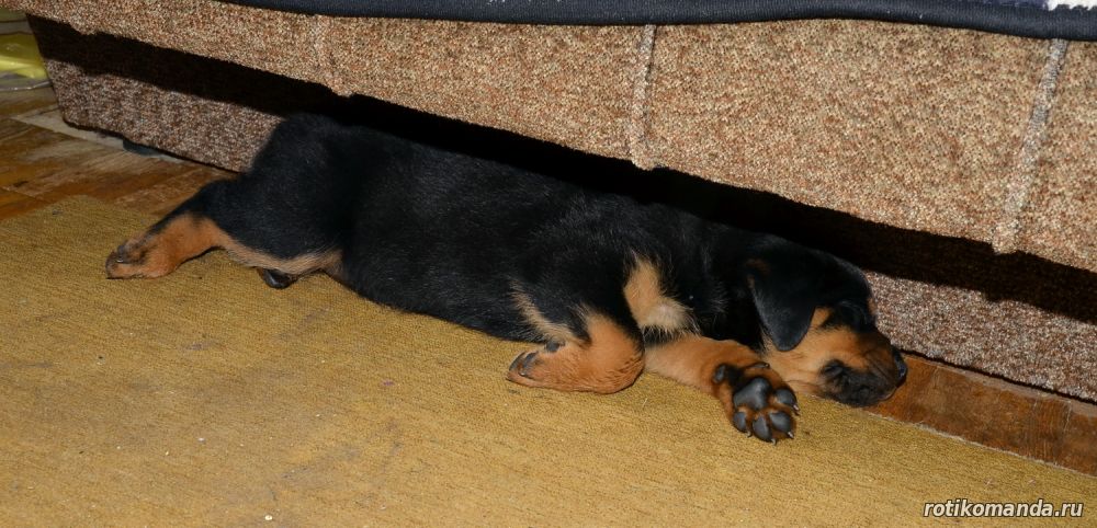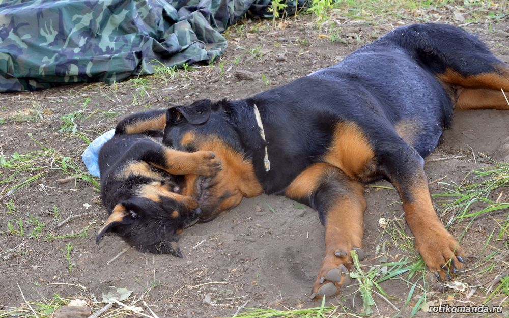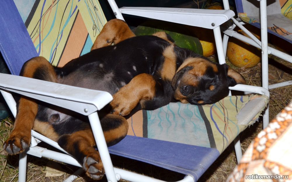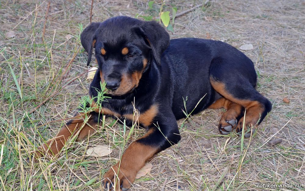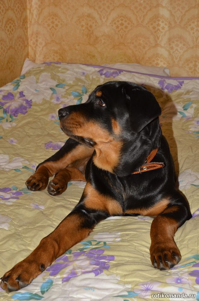 | В нашей семье жизнь без четвероногого друга уже немыслима. Порода, разумеется, в семье не обсуждалась. Кроме "ротика" лучше может быть только "ротик"! Не знаю, как, что и кто меня вел в поисках новой любимицы (а было именно так, также, как и с Евой), но я оказался на АВИТО. Просмотрев несколько вариантов, мы остановиль на одном из них. На фото красовалась семья "ротиков". Хозяйка предлагала несколько щенков, среди которых было две девчонки. Со слов хозяйки, одна всегда оставалась с мамкой, а другая - постоянно следовала за хозяйкой. Проанализировав, мы уже заочно выбрали вторую.